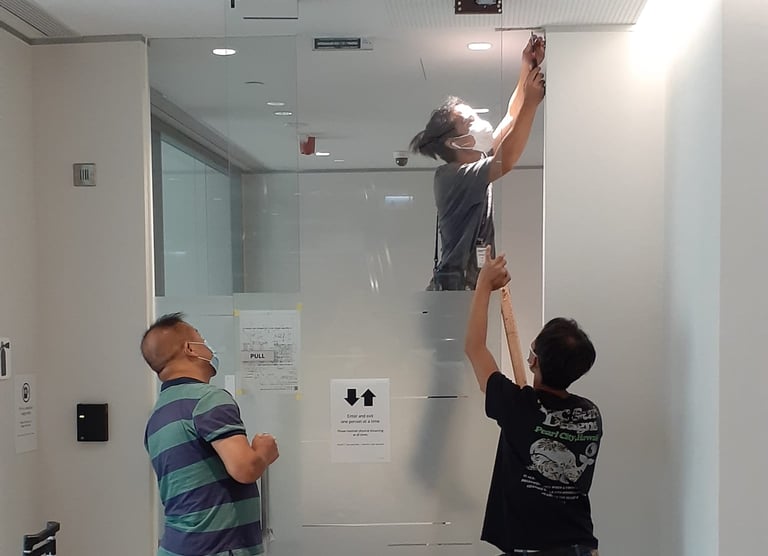 Glasshouse construction/Aluminum window inspection/ Window hinge repair/ Glass scratch repair/ Glass protective film